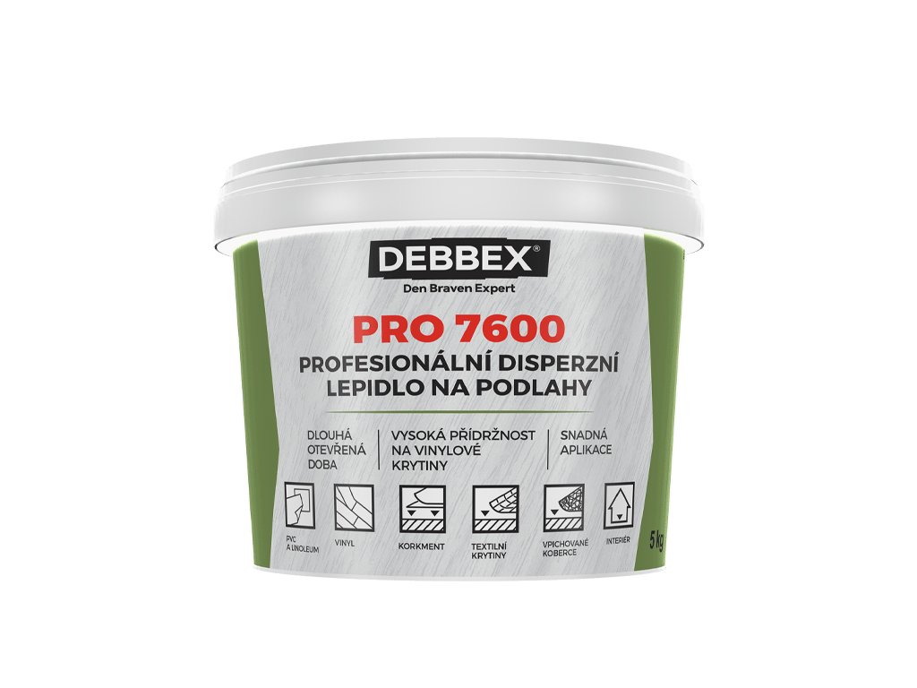 Profesionální bezrozpouštědlové podlahové lepidlo, na bázi disperze. Vytváří trvale pevný, elastický spoj. Okamžitě a snadno použitelné, lehce roztíratelné. Vysoká přilnavost k savým materiálům. K lepení podlahových krytin na savý podklad. Použití: lepení vinylových dílců, koberce (podélné vlákno), vpichované koberce (kolmé vlákno), homogenní PVC, korek, PVC na pěnovce, PVC s filcem, CV krytina, linoleum, lepení krytin i na svislé stěny (PVC), na betonové podklady, nivelační hmoty, minerální podklady, dřevotřískové a cementotřískové desky, lze použít i překližky, polystyren či polyuretan.