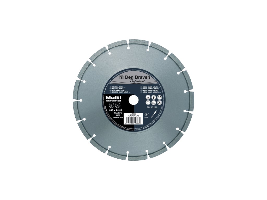 Laserem svařené segmenty. Multifunkční pro řezání široké škály materiálů jako je kov, inox, kámen, beton, asfalt nebo žula. Maximální obvodová rychlost do Ø 230 mm = 80 m/s.