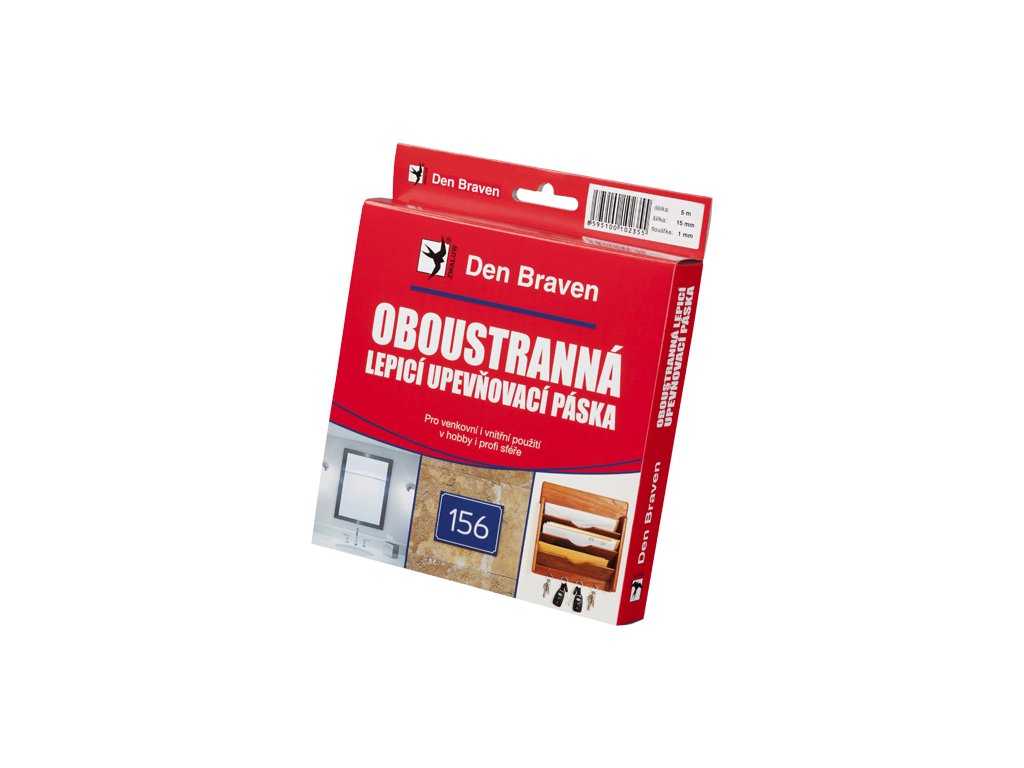 Pro mnohostranné upevňovací práce v domácnosti i v profi sféře. Ideální pro upevňování výstražných a informativních cedulí a dekorativních předmětů. Okamžité upevňování firemních tabulí na prezentacích, výstavách a veletrzích. Fixace lepených předmětů při montážích jako lepení zrcadlových stěn, menších zrcadel do skříní a koupelen apod. Vysokou lepivost a přilnavost k podkladu obstarává speciální oboustranný nános kaučukového lepidla na pěnové PE pásce. Hobby balení v krabičce.